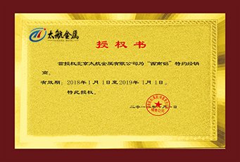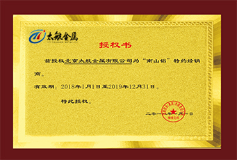 南山鋁業特許經銷商證書                                                                            西南鋁業特許經銷商證書